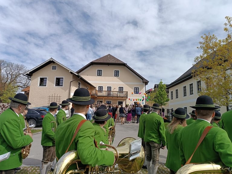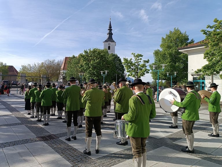 Am 28. April durften wir die Erstkommunionkinder an ihrem besonderen Tag begleiten. Vom Rathausplatz marschierten wir in die Kirche. Nach dem Gottesdienst ging es weiter zum Pfarrheim zu Agape.
