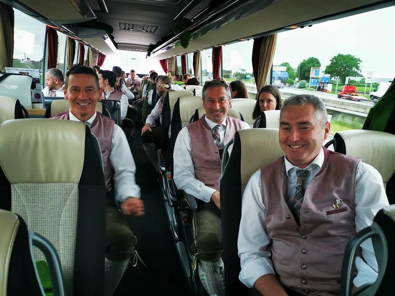 Nach dem Festzug zur Kirche und dem Gottesdienst, spielten wir einen Frühschoppen im Festzelt. Am späten Nachmittag ging es dann wieder mit dem Bus Richtung Seewalchen.