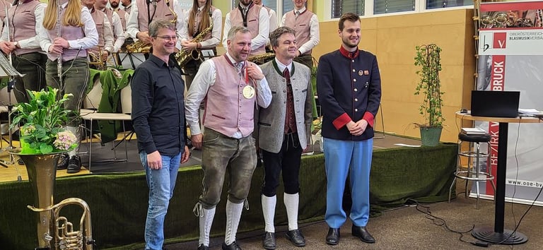 Unser Obmann Tobias überreichte gemeinsam mit unserem Kapellmeister, dem Bürgermeister und der Vertretung der Bezirksleitung ein Musikerleistungsabzeichen und ingesamt neun Ehrungen. Außerdem wurde unser langjäjhriger Musiker Hauseder Fritz zum Ehrenmusiker ernannt.